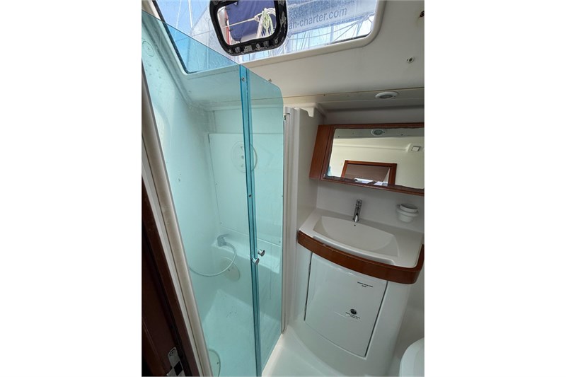 Bimini, Cockpit Speakers, Dinghy, Hot Water, Solar Panel, Stove, 12 Volt Socket, 220 Volt Socket, Battery Charger + Wire, Cockpit Table, Deck Shower, Diving Mask, Electric Bilge Pump, Electric Fridge, Electric Windlass, Flippers, Galley Equipment, Gangway, Holding Tank, Radio-CD player, Sail Repair Kit, Ships Licence, Swimming Ladder, Tools